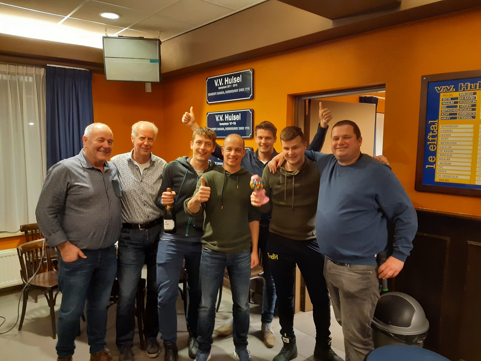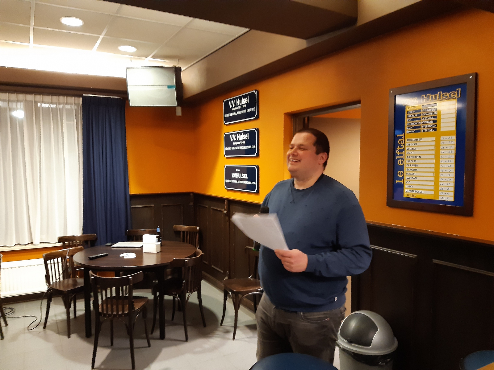 Donderdagavond 6 februari werden de hersens weer gekraakt op ’t Kantje. Joris Tuns en Teun Jansen hadden weer een mooie pubquiz in elkaar gezet. Op de foto het winnende team van de avond met de twee organisatoren.